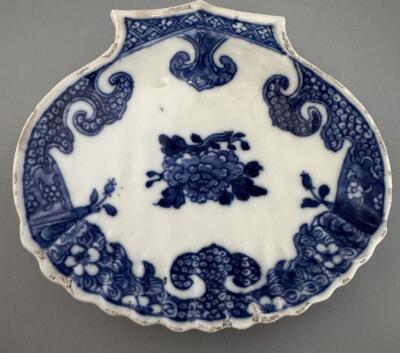 Vacker smörsnäcka med blå underglasyr och dekor...