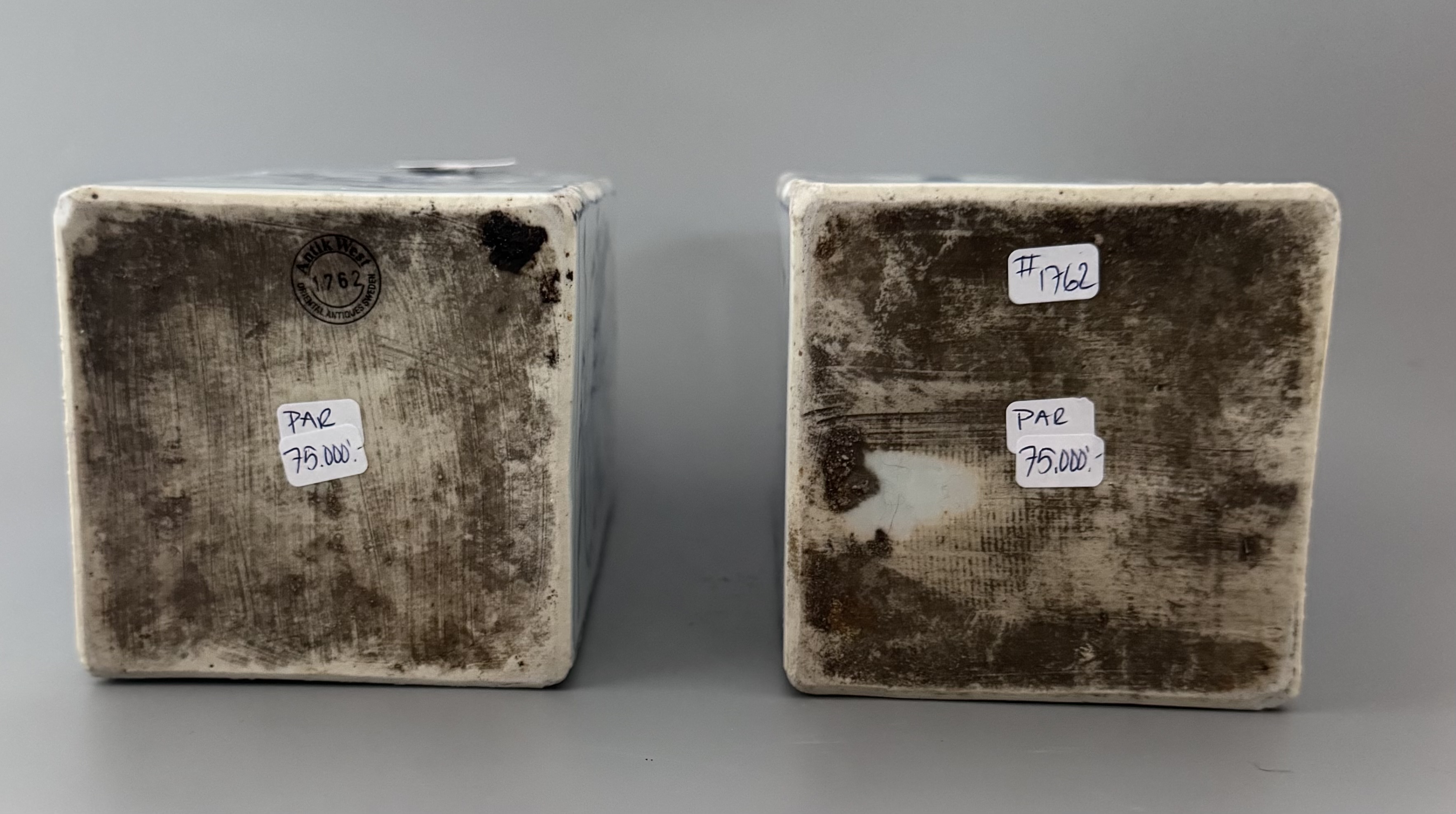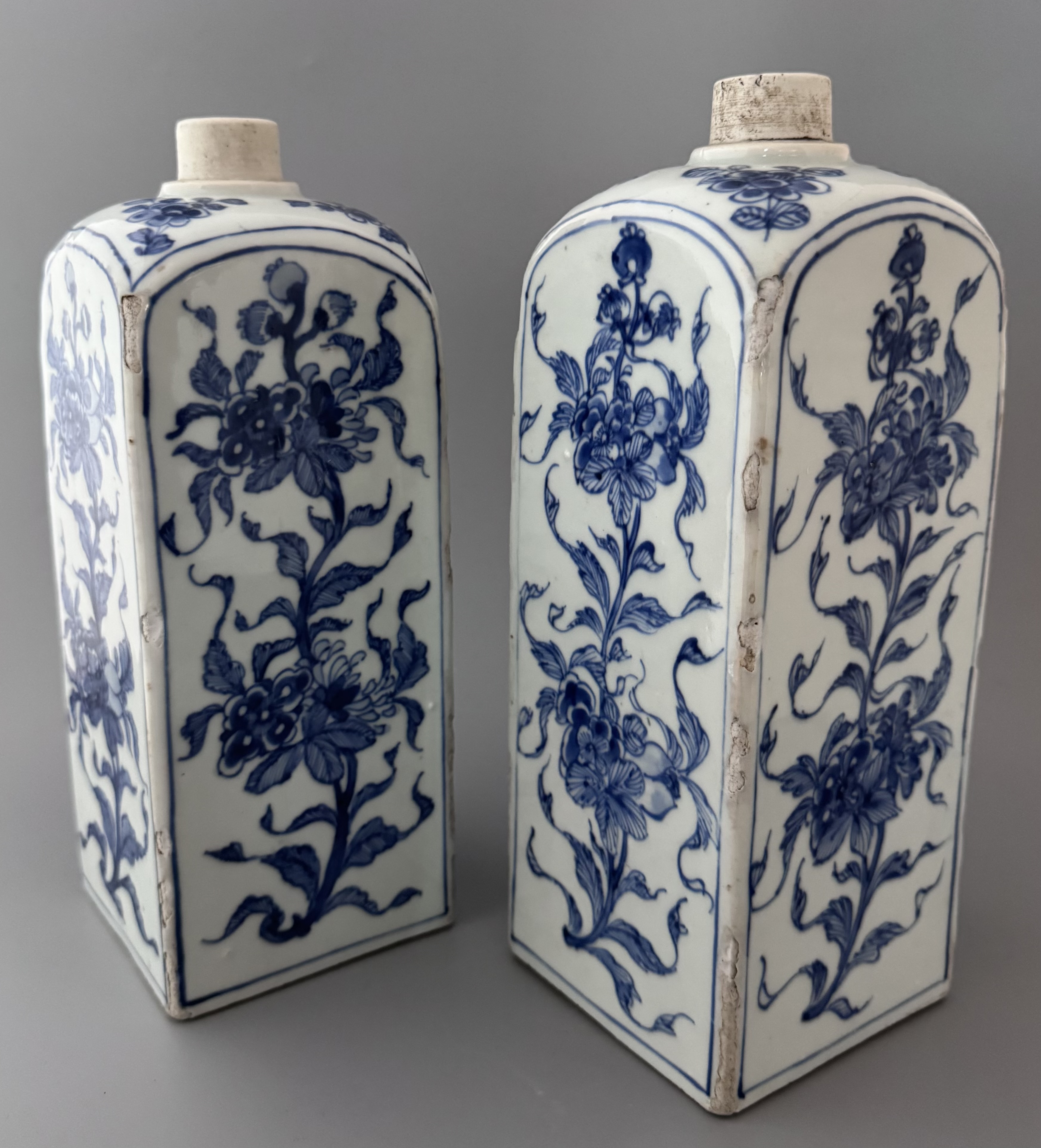 Ovanligt par buteljer i blå underglasyr. Kina, Kangxi ca 1700.
