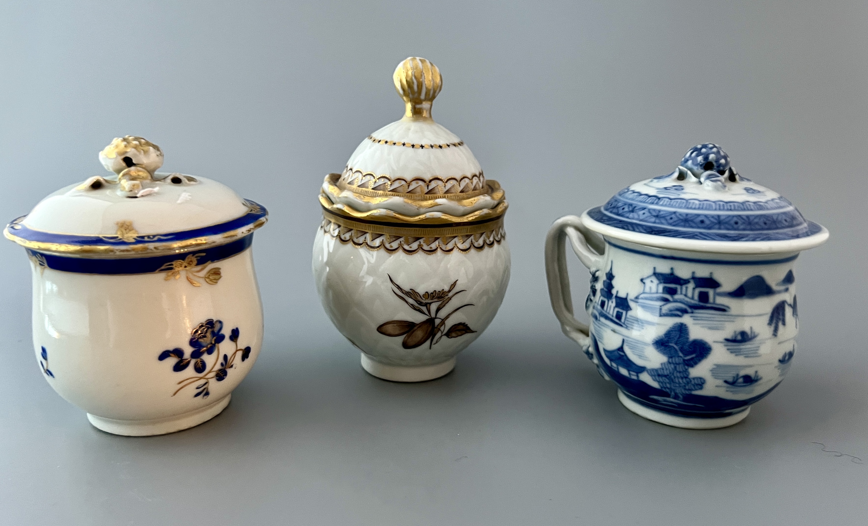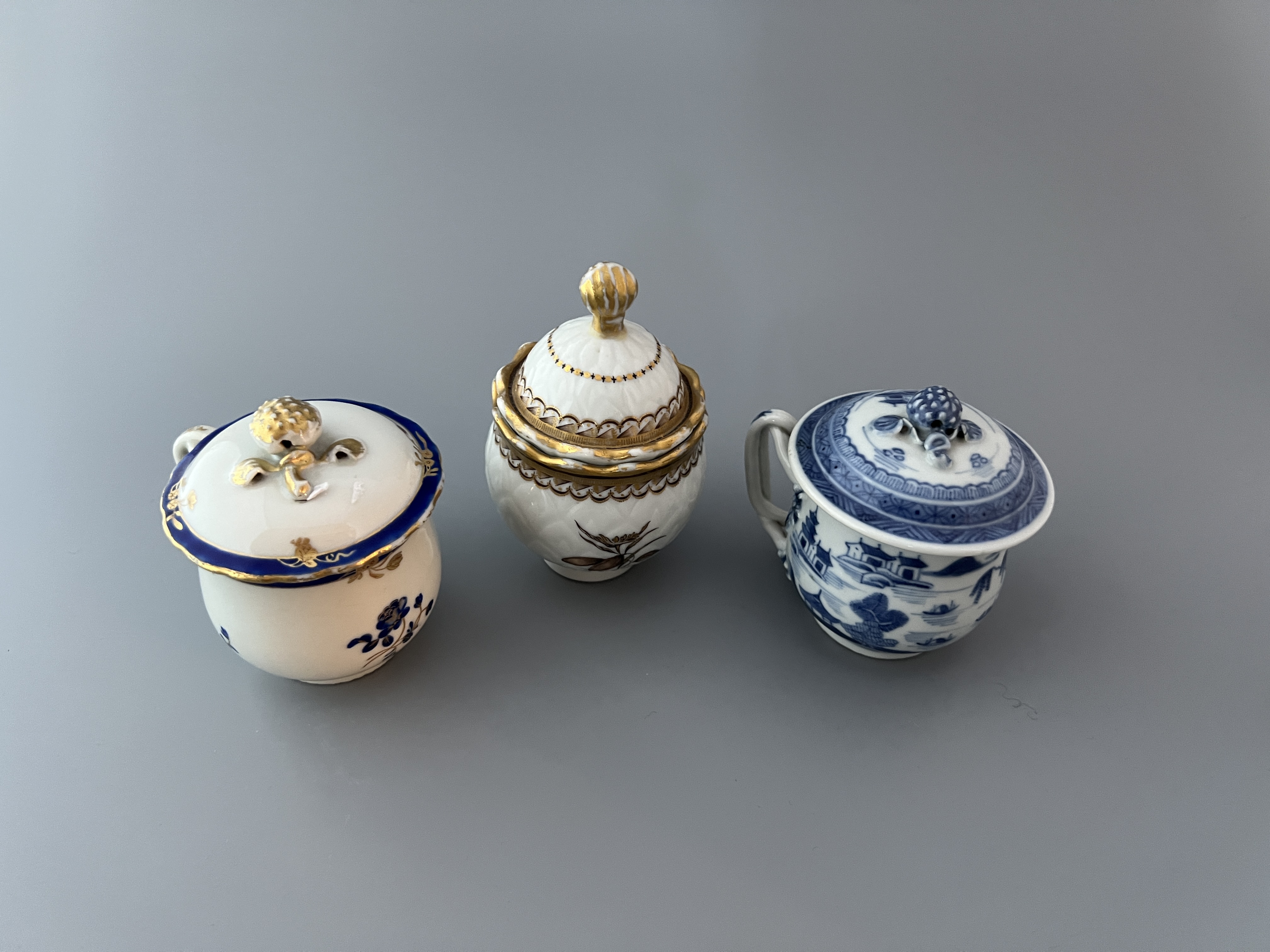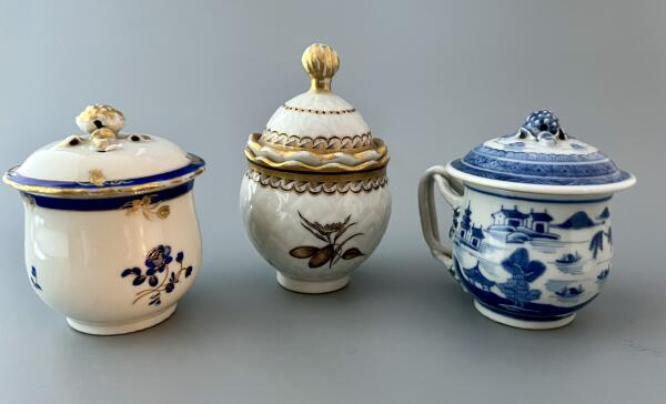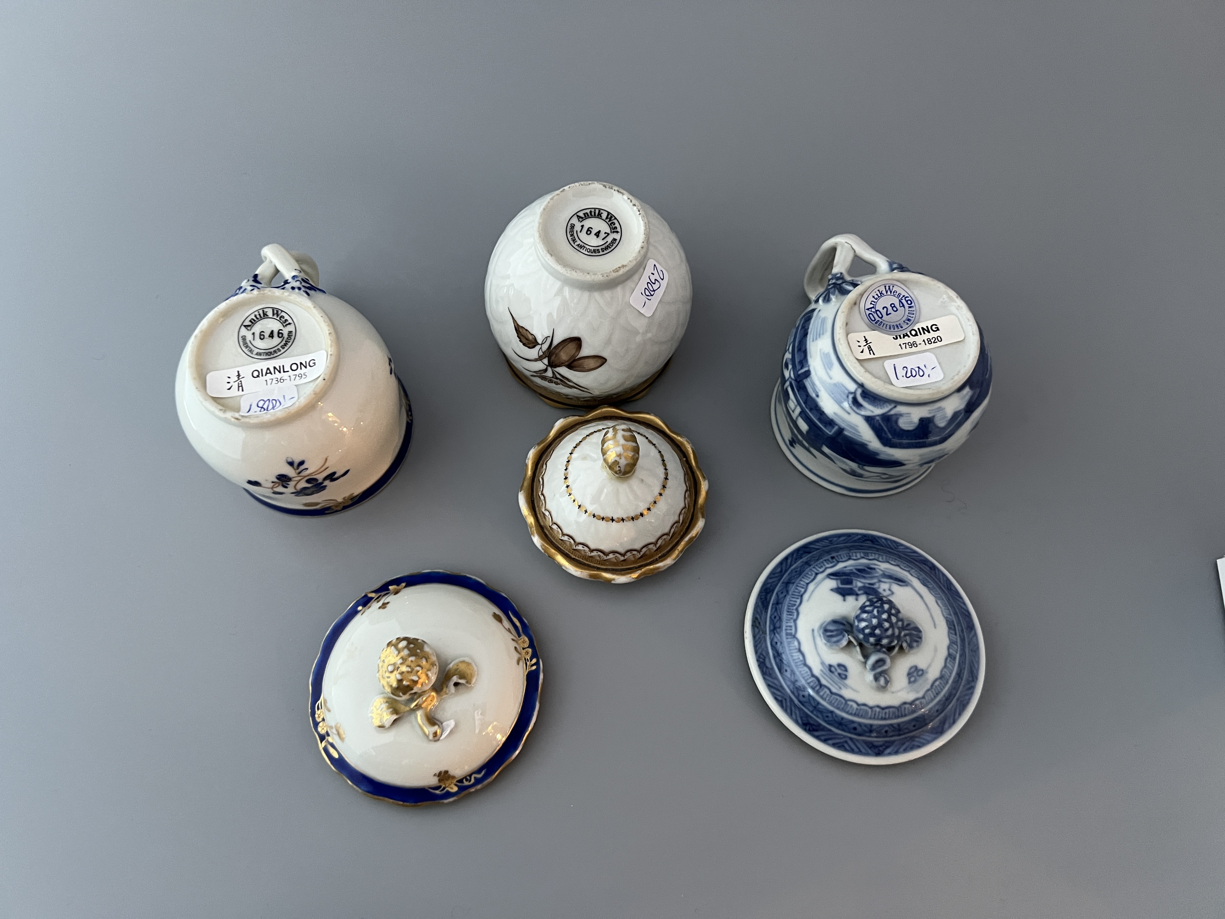 Krämkoppar med gulddekor. Kina, ca 1760.