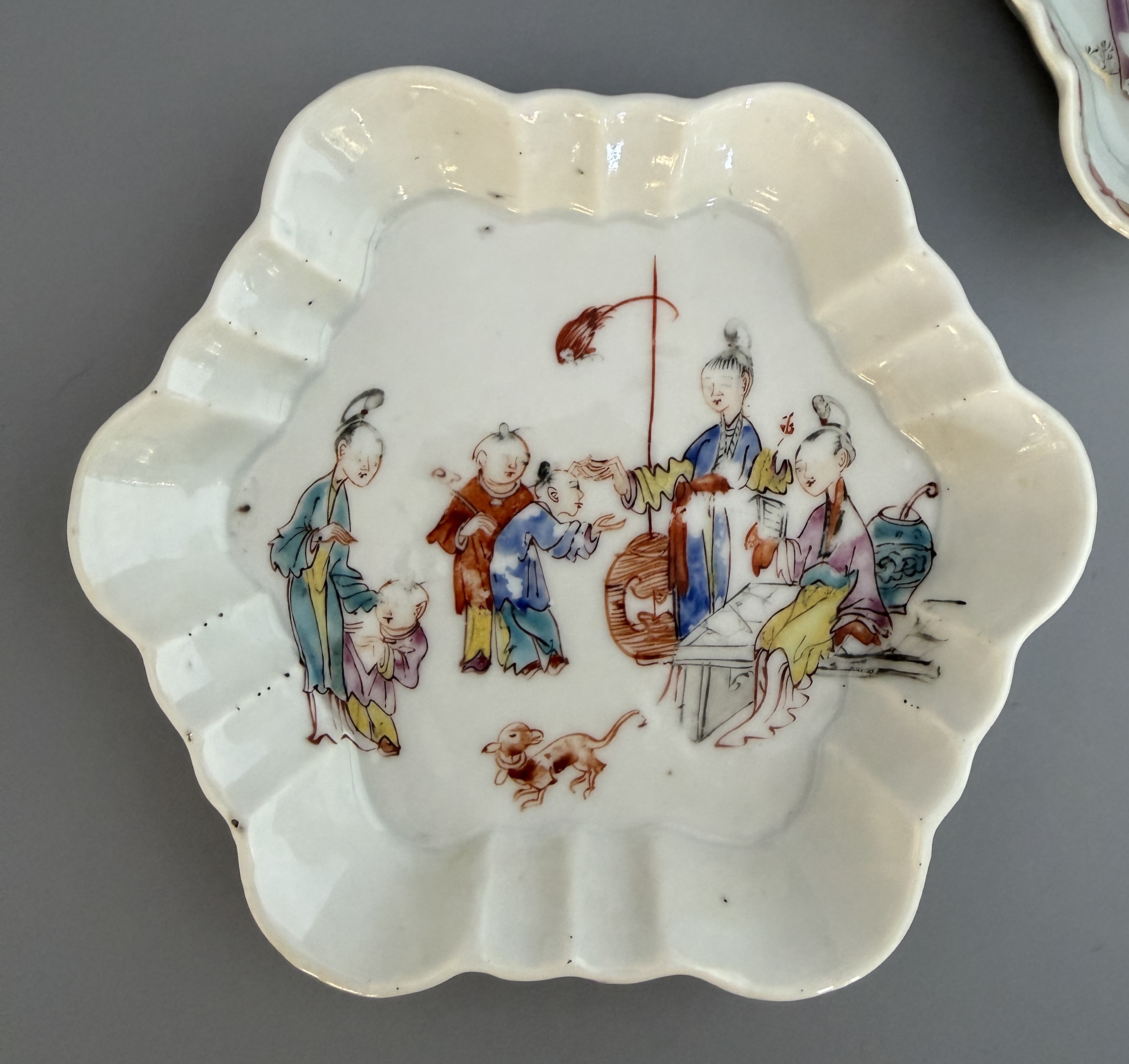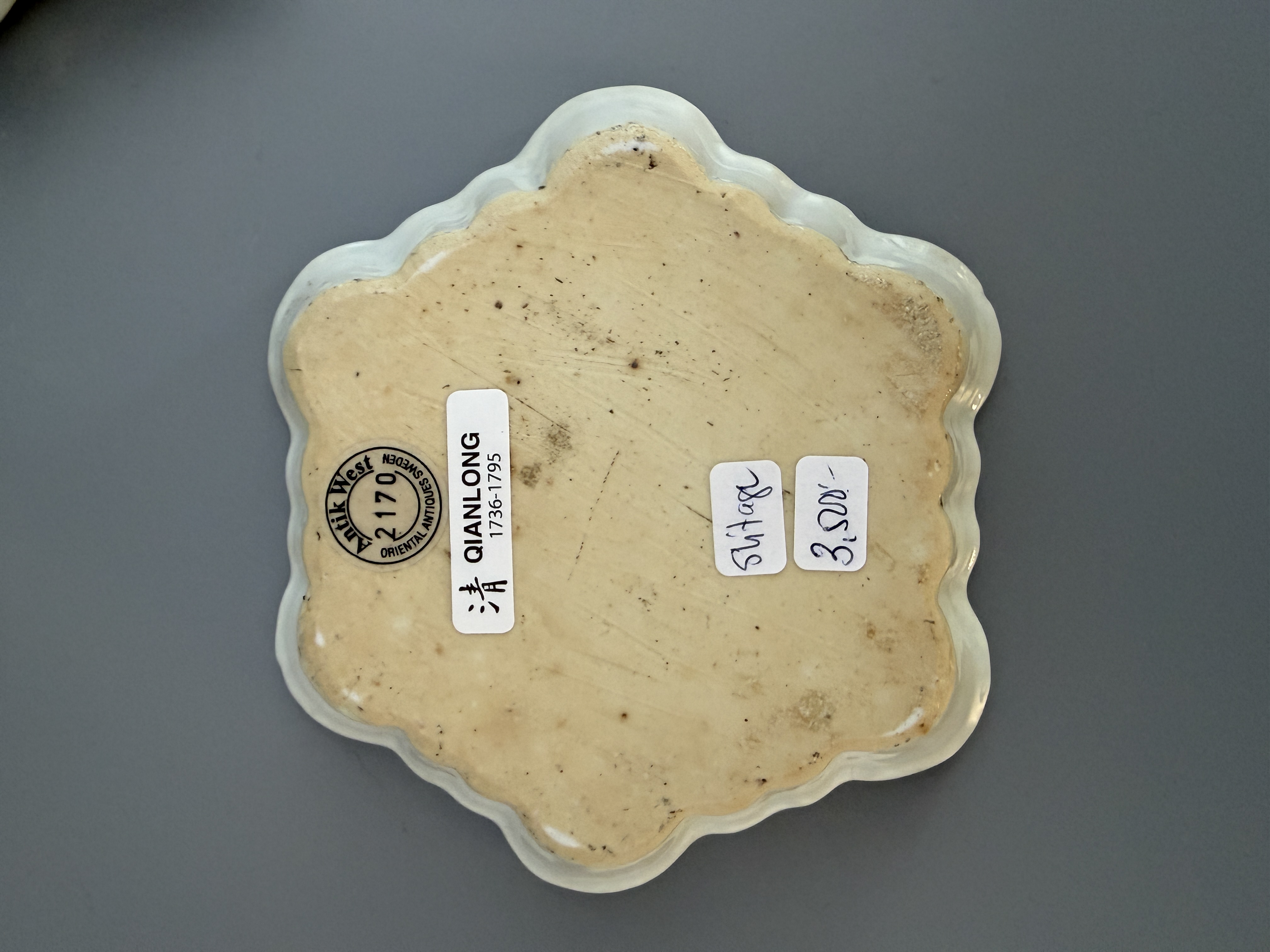 Tekannefat i kinesiskt porslin från Qianlongperioden. Dekor i famille rose.