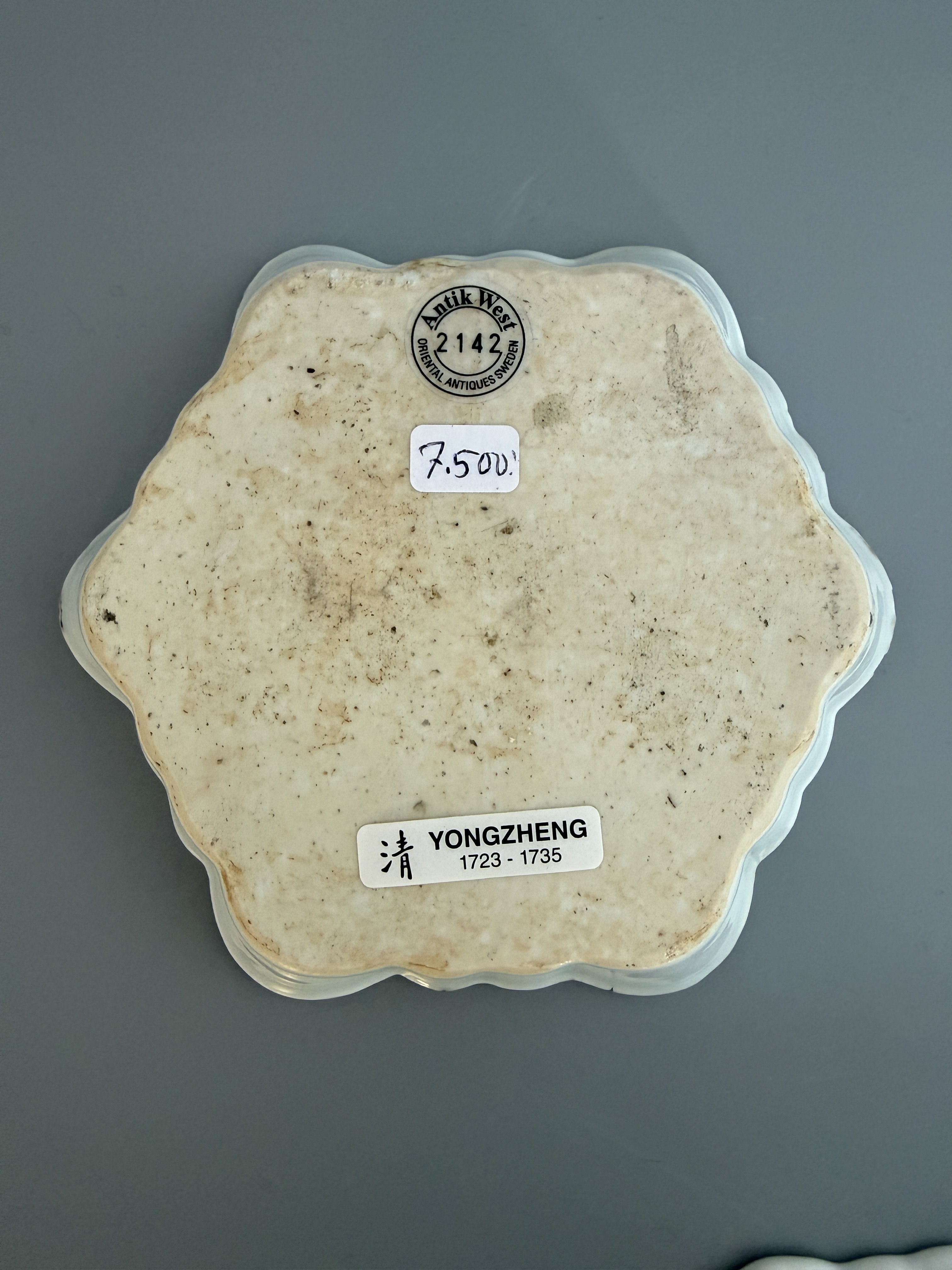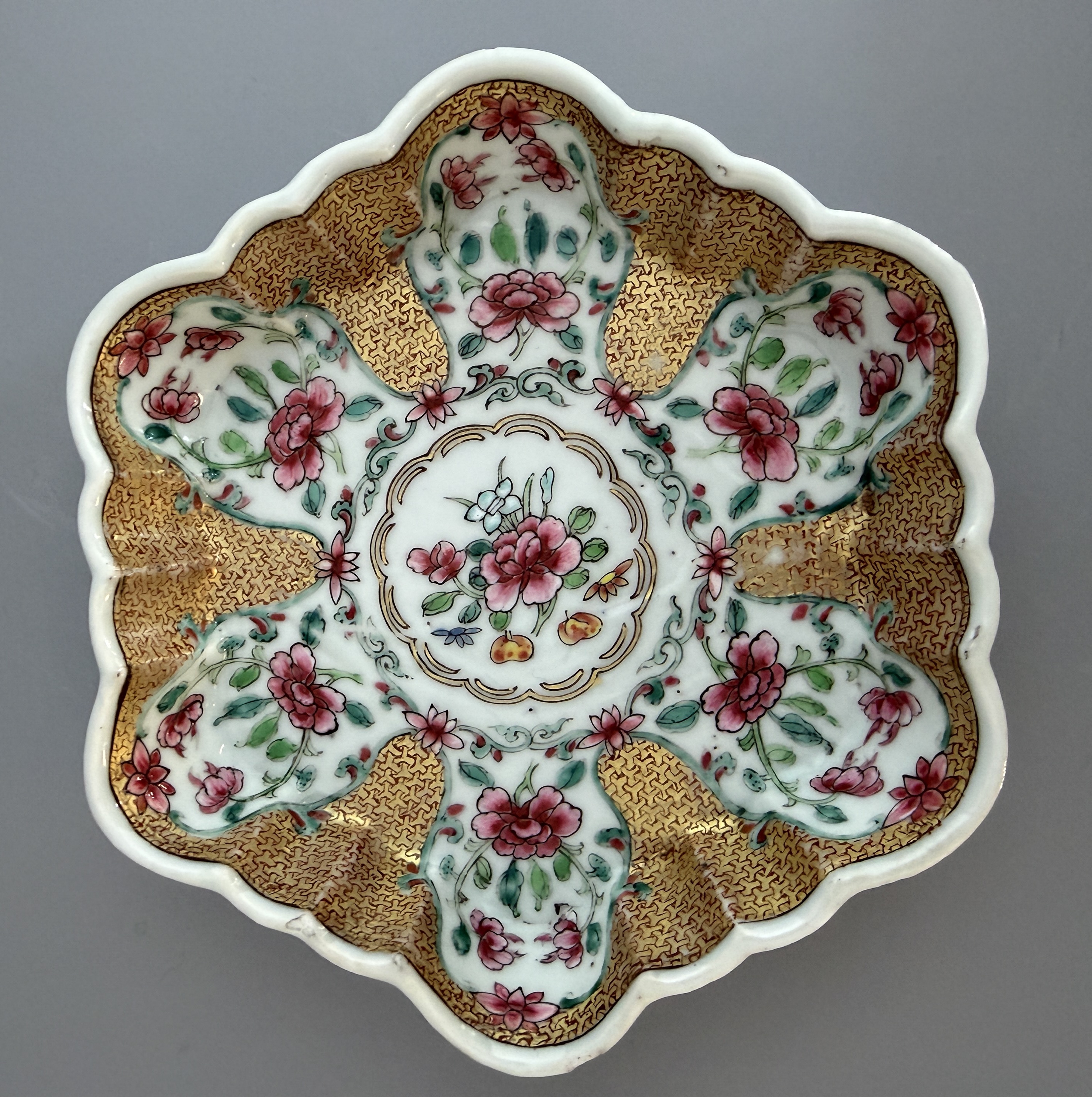 Tekannefat i kinesiskt porslin, 1700-tal. Dekor i famille rose av blommor.
