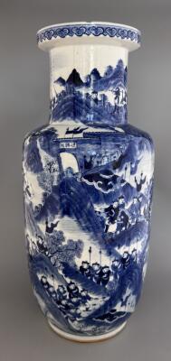 En vas med blå underglasyr och dekor av 100 kriga...