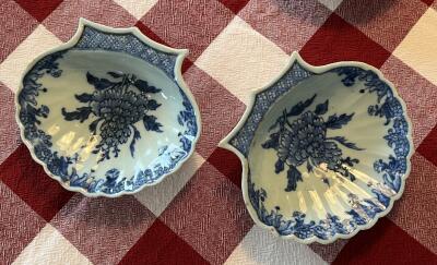 Ett par snäckformade fat i kinesiskt porslin, dek...