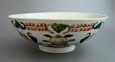 Skål i kinesiskt porslin med dekor av olika symbo...