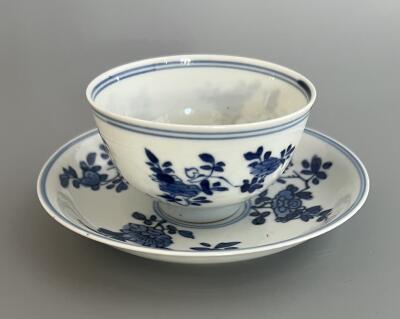 Kopp och fat i kinesiskt porslin, med dekor i blå...