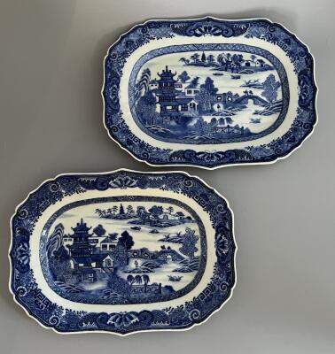 Ett par stekfat, kinesiskt porslin med dekor i blÃ...