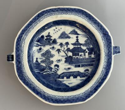 Stekfat i kinesiskt porslin med dekor av pagoder o...