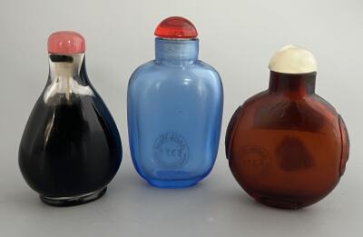 Tre snusflaskor i glas. Kina ca 1900. Höjd 6,5...
