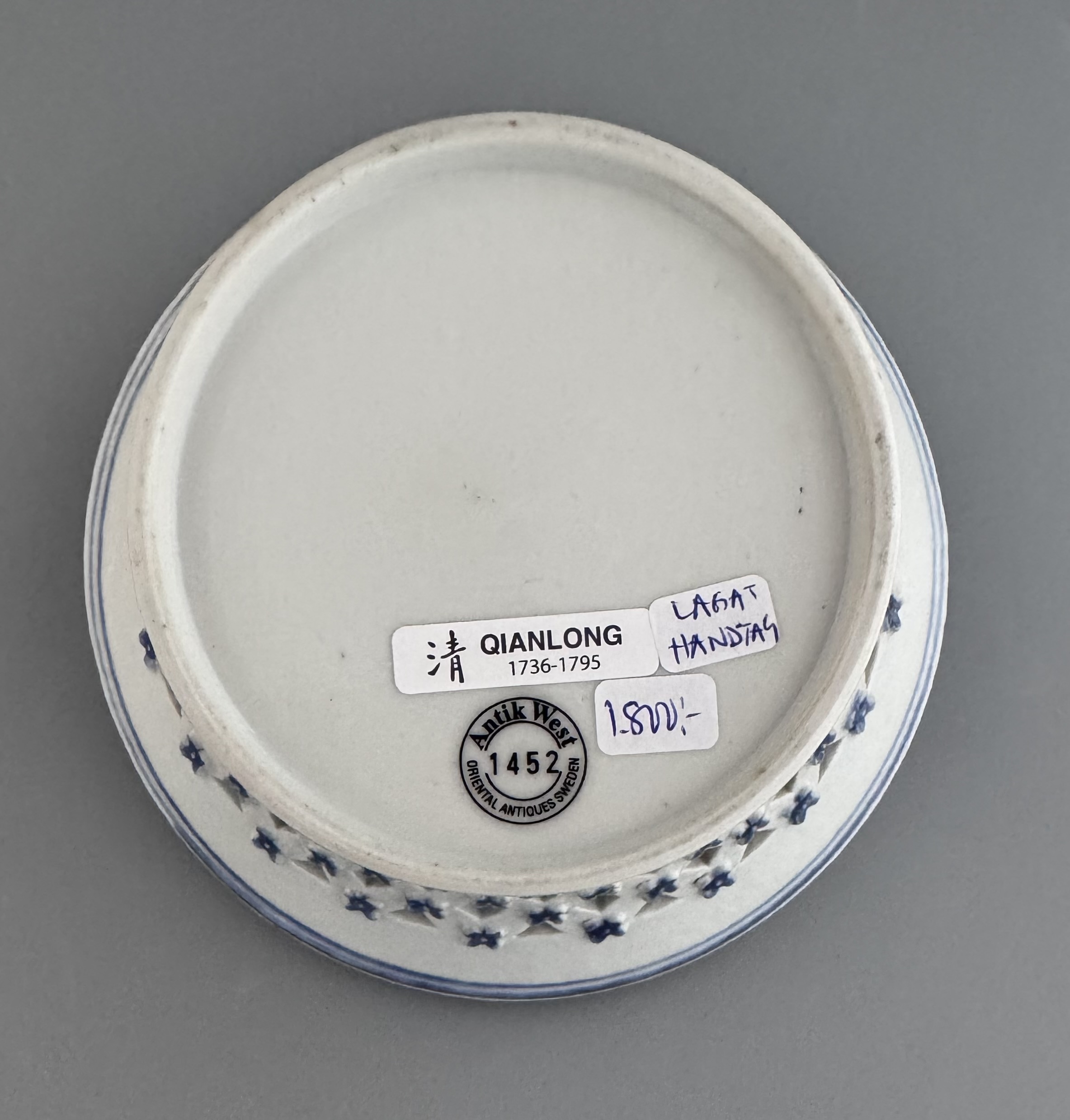 Gallerkorg med blå underglasyr. Kina, Qianlong 1700-tal.