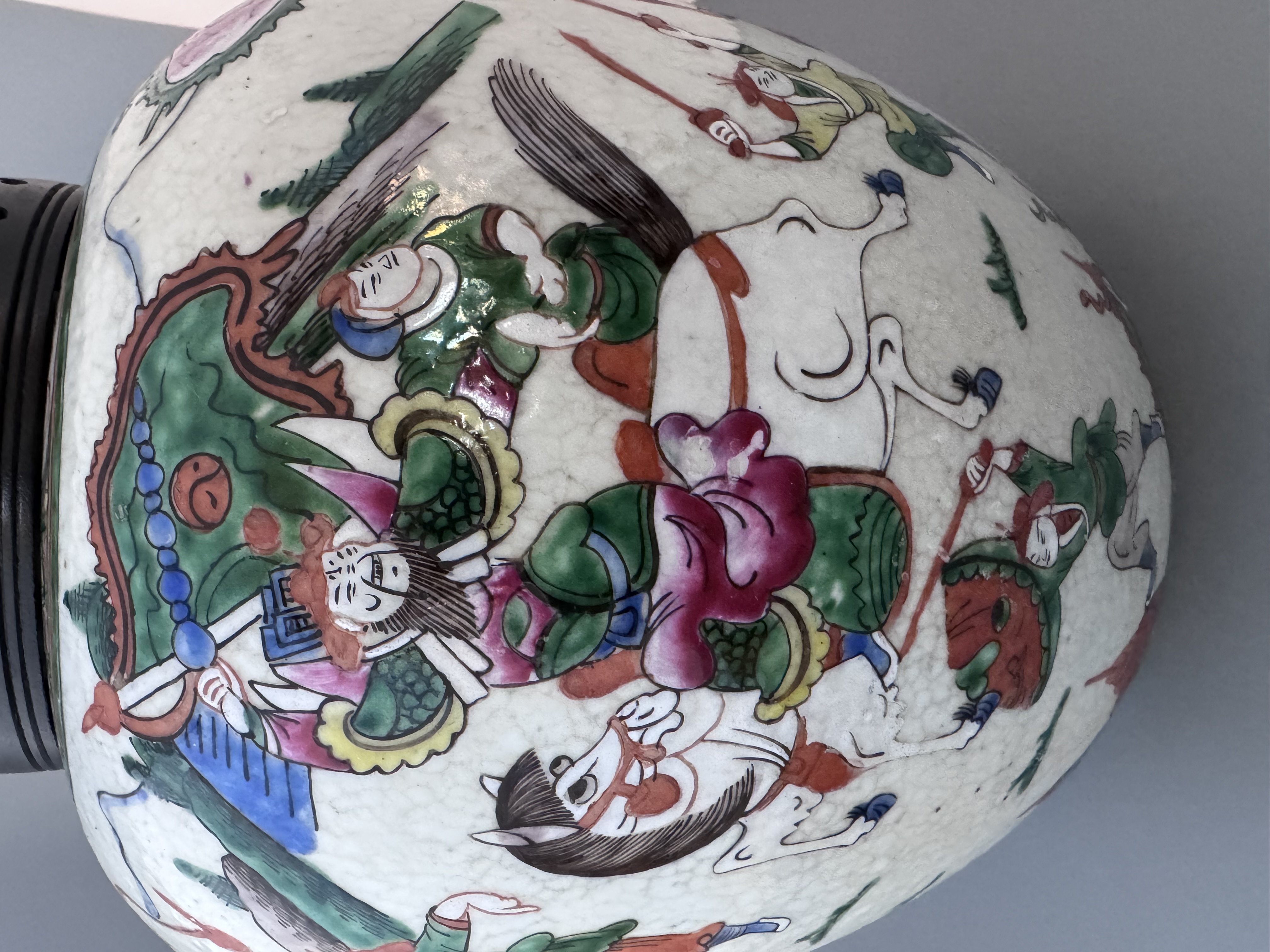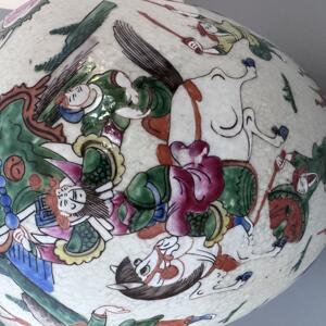 En stor urna, 31 cm hög, med emaljdekor.